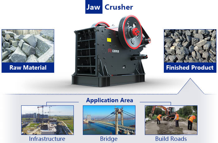 Широко используется для первичного и вторичного дробления (первая и вторая стадия) гранита, речного камня, бутового камня, скалы, валуна, гравия, заполнителя, базальта, известняка, золотой руды, железной руды, хромовой руды и т. д. Регулируемый конечный размер для удовлетворения различных потребностей.